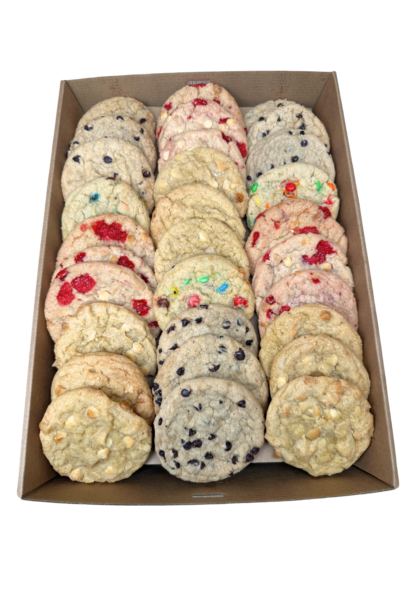 Contains 30 assorted cookies, freshly baked in-store. Perfect for parties, meetings & celebrations